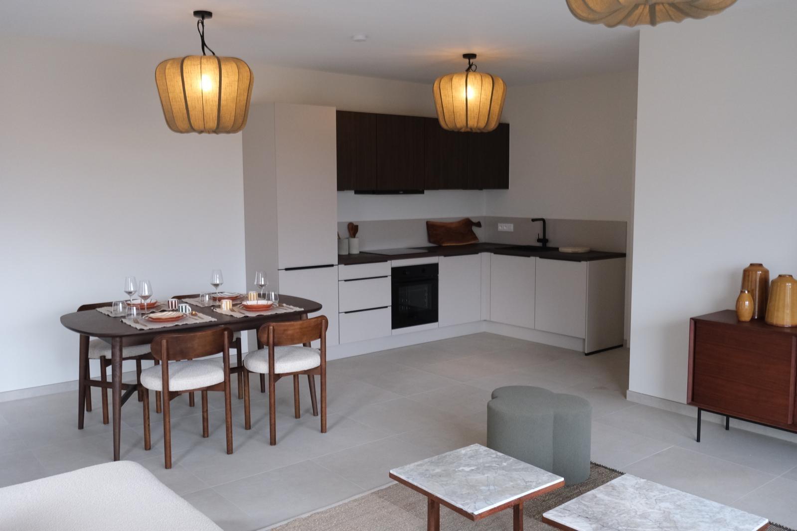 Les autoroutes E25 et E42, proches sans compromettre la tranquillité, facilitent les déplacements. Une large gamme de logements est proposée, allant du studio à l'appartement de trois chambres, tous dotés de belles terrasses pour un cadre de vie agréable.